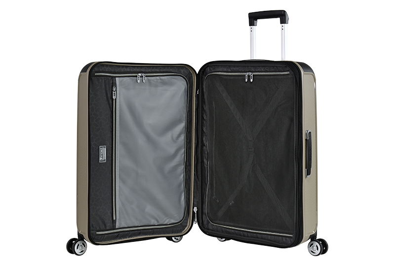 拉桿置於箱殼外部,提升內部空間平整度,收納物品不受限。