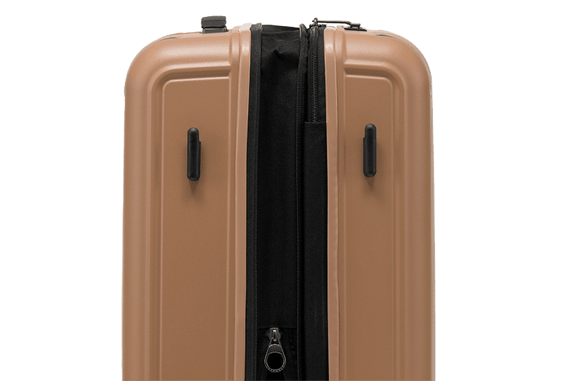 源自於B0006 VERTICA 三扣鎖箱的流暢曲線外型,改為拉鍊式行李箱,內裝新增雙面ㄇ字型拉鍊格網及雙格收納袋,以滿足不同使用者的偏好與收納需求;24吋&28吋另加設可擴充拉鍊,可彈性調整空間大小。